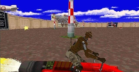 I distinctly remember renting Rocket Jockey from a grocery store in the late 90s. What a different time! I remember looking at the cover, turning over the box, and seeing guys riding rockets dragging people around on cables. Well this might just be the best thing ever! I took it home, booted it up, was greeted with some awesome surf rock and was totally on board.